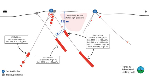 Figure 2: Cross section showing selected results for 2025 Steve Zone drill holes.